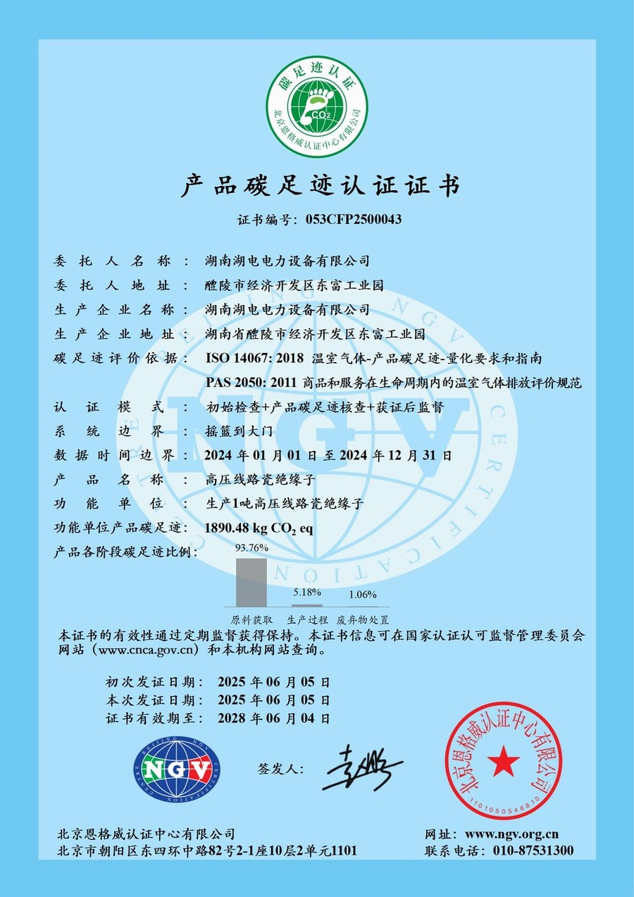 高壓線路瓷絕緣子碳足跡認證證書和報告