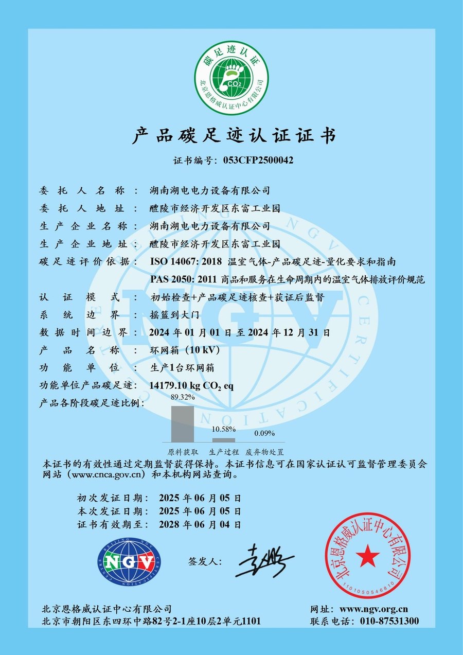 環網箱碳足跡認證證書和報告