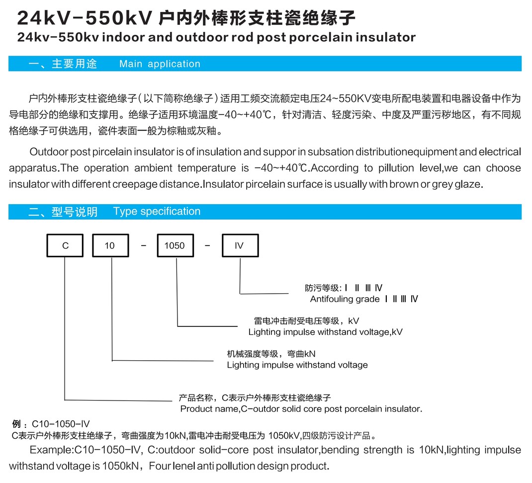 24KV-550KV戶內(nèi)外棒形支柱瓷絕緣子
